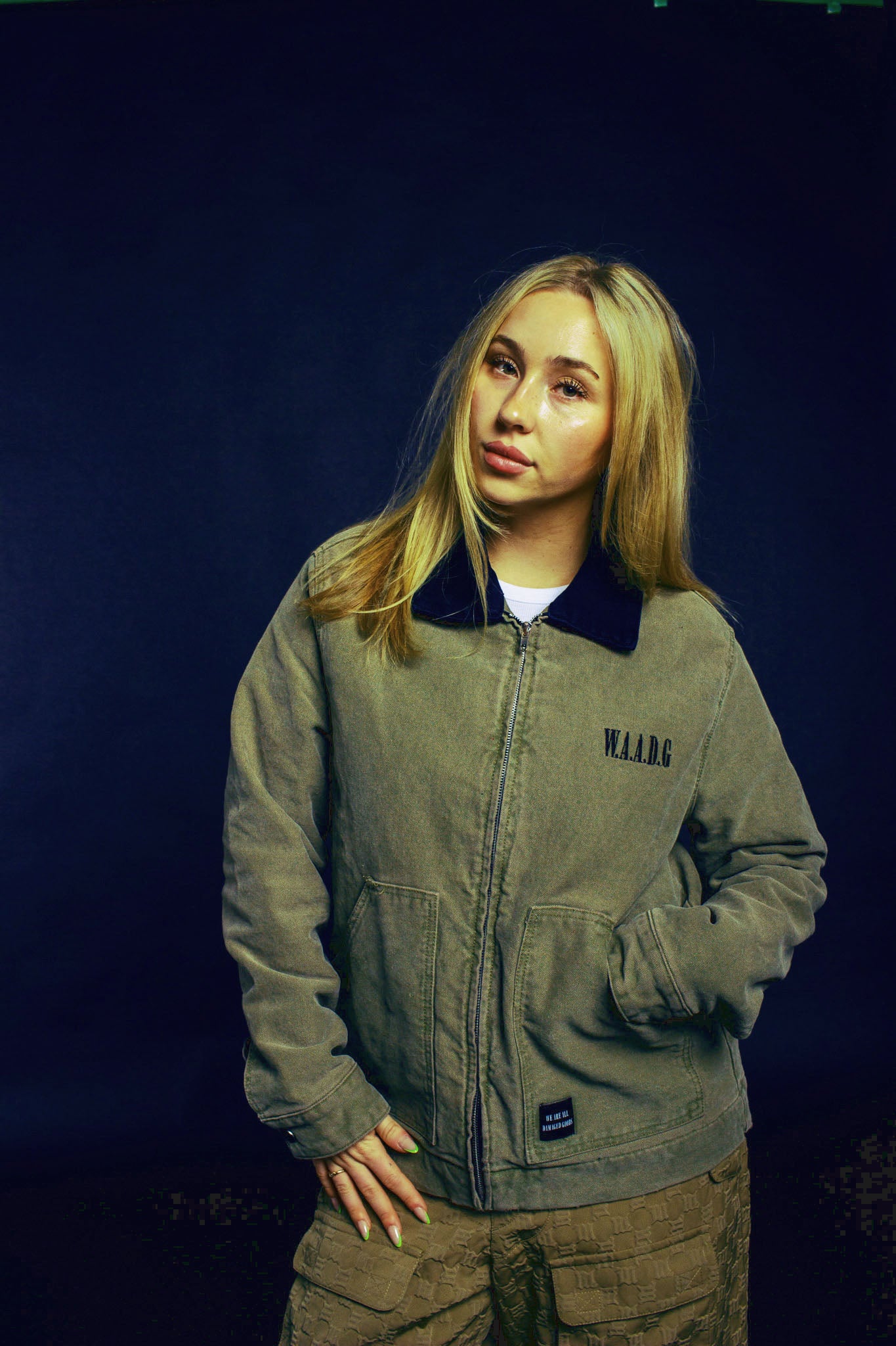 - Washed Army Green Color W/ Black Collar